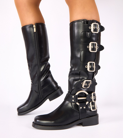 Juodi aukštakulniai ilgaauliai batai su dekoratyvinėmis sagtelėmis Sadie
