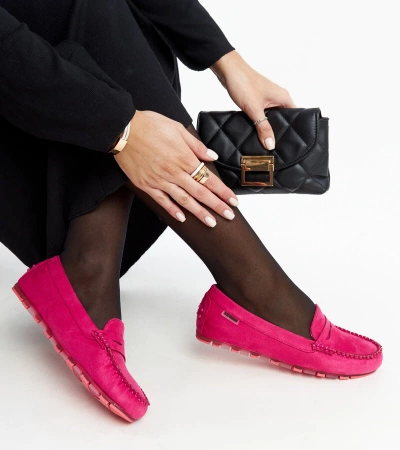 Rožiniai mokasinai, dekoruoti sagtimi Gaston