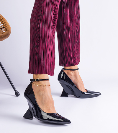 Juodi lakuoti pleištiniai bateliai su sagtelėmis Vizario