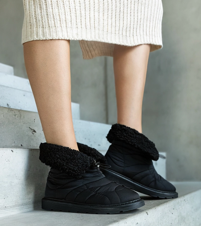 Juodi pašiltinti dygsniuoti sniego batai Antonina
