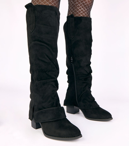 Juodi eko zomšo ilgaauliai batai su atlenktu aulu Batta