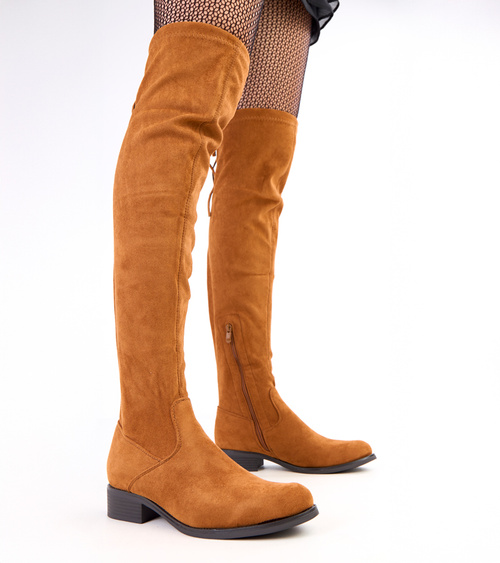 Rudi virš kelių ilgaauliai batai su plokščiu padu Heloren