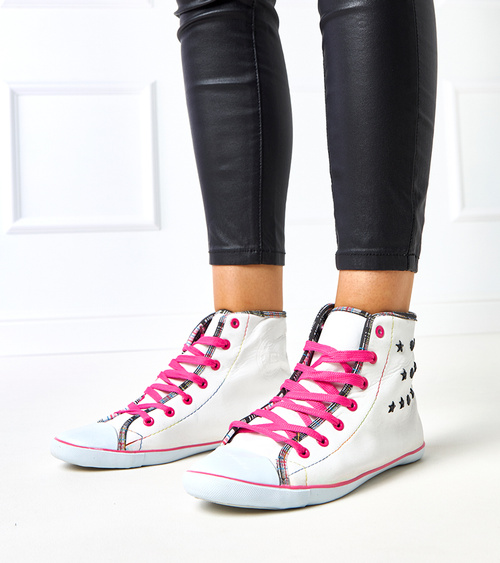 Balti sportiniai bateliai virš kulkšnies su geometriniu raštu Kalert