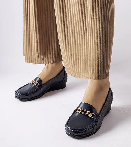 Tamsiai mėlyni mokasinai su sagtimi ant platformos „Lerino“