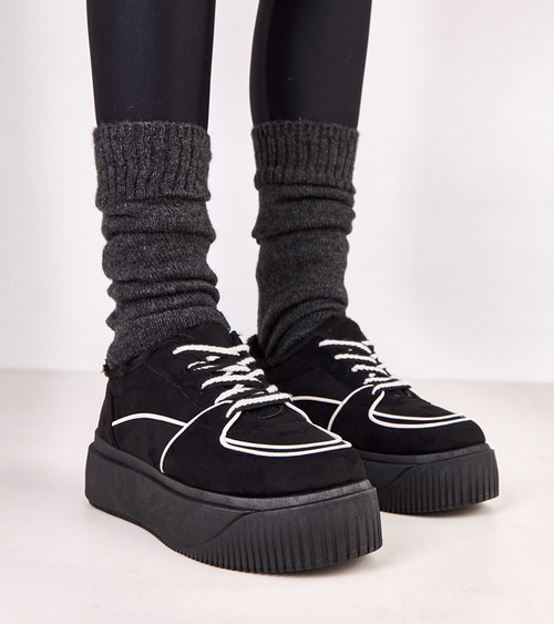 Juodi pašiltinti sportiniai bateliai ant platformos „Vargas“