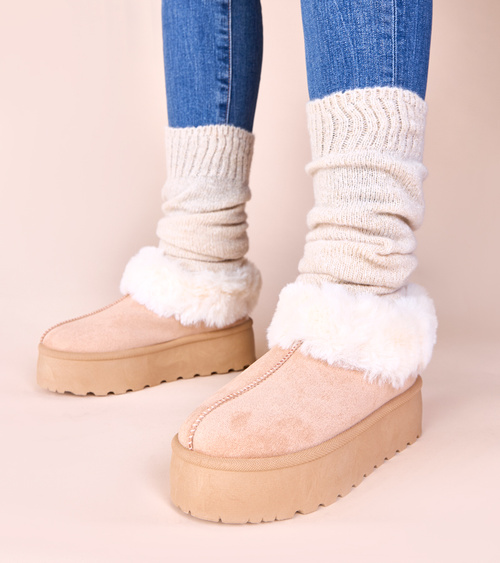 Šviesiai smėlio spalvos sniego batai su kailiuku Deesi