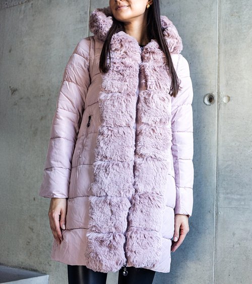 Rožinė striukė su nusegamomis kailinėmis rankovėmis Louis